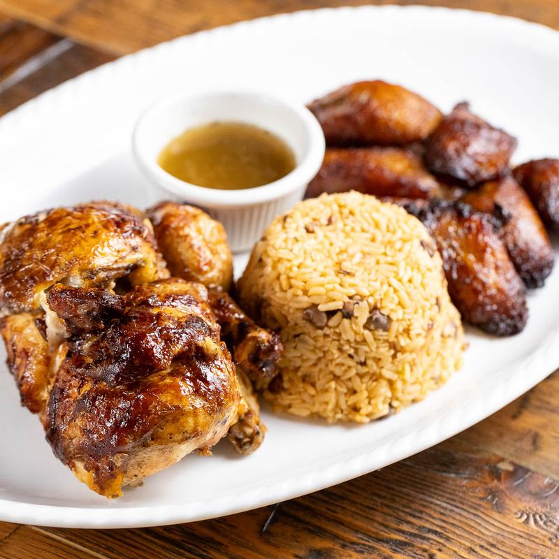 Caribbean sauteed chicken served with a choice of side rice and beans