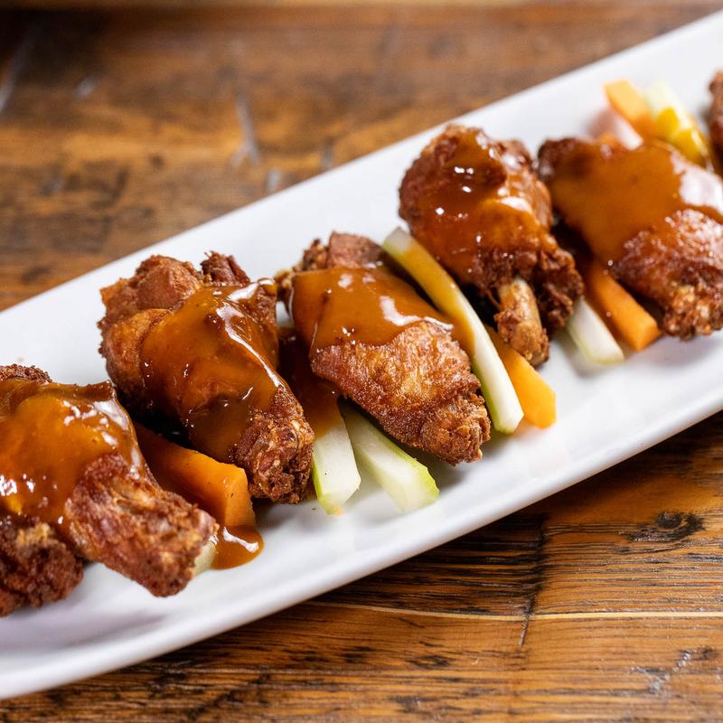 Chicken wings dipped in our homemade spicy BBQ salsa
