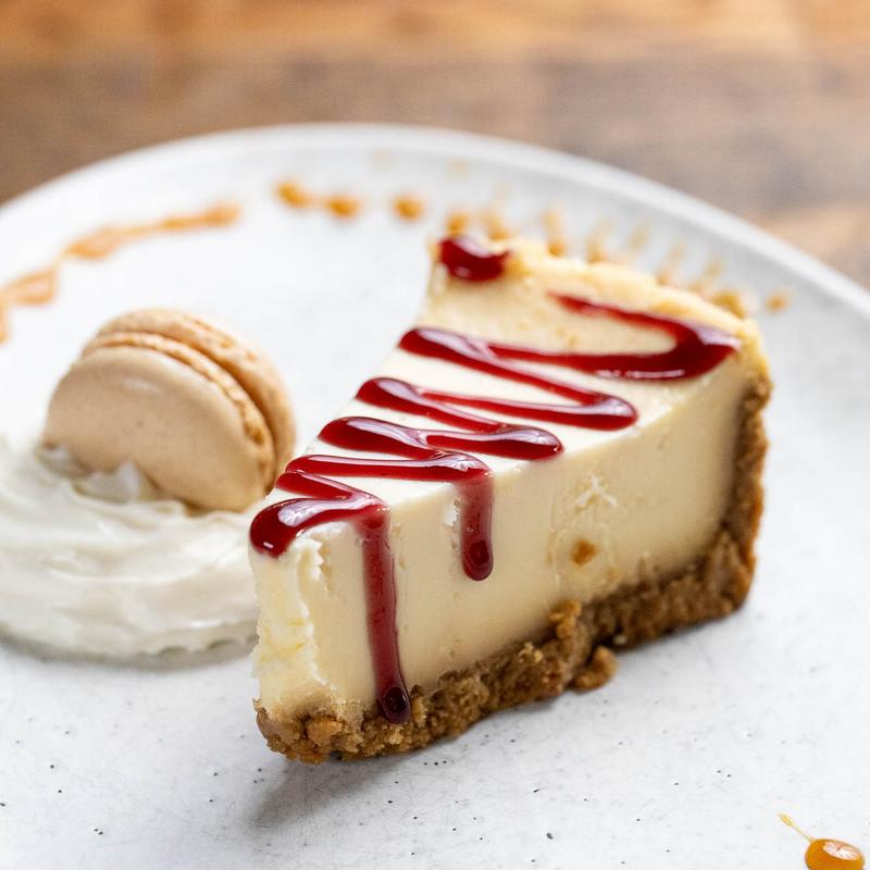New York style strawberry cake baked on a sweet cracker crust topped with fresh succulent strawberries